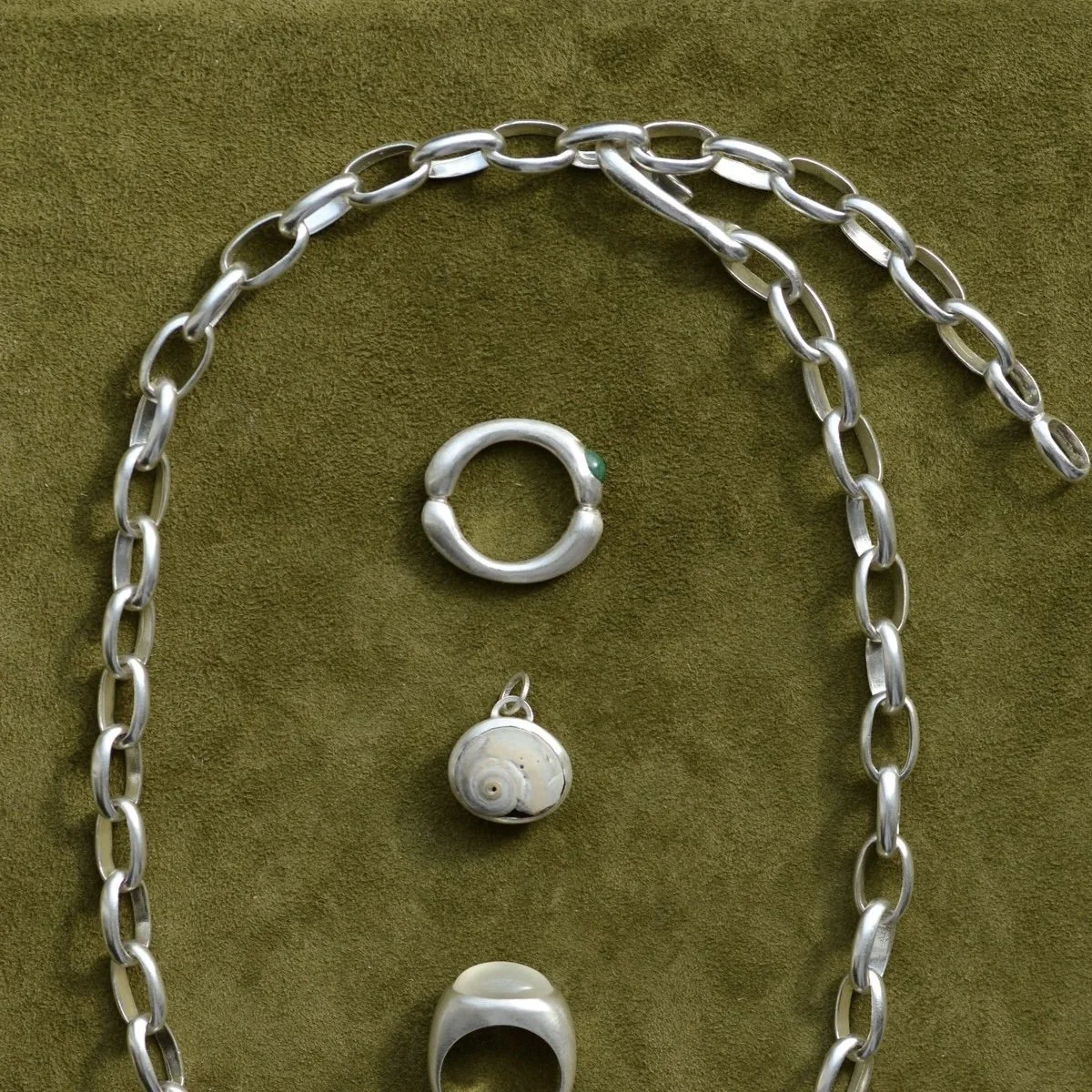 Collar measures 17″Trained in fine art, sculpture, metalsmithing, and jewelry making, designer Hannah Ferrara began creating jewelry after searching for the signature pieces she herself wanted to wear. Inspired by nature, modern design, and ancient artifacts, Another Feather offers a collection of jewelry for everyone.