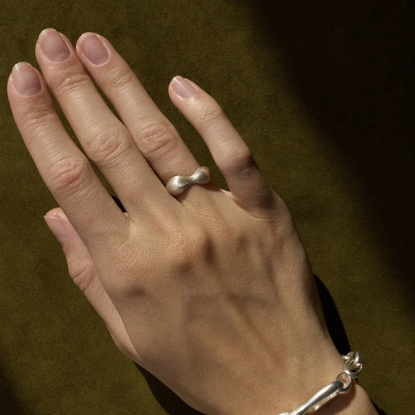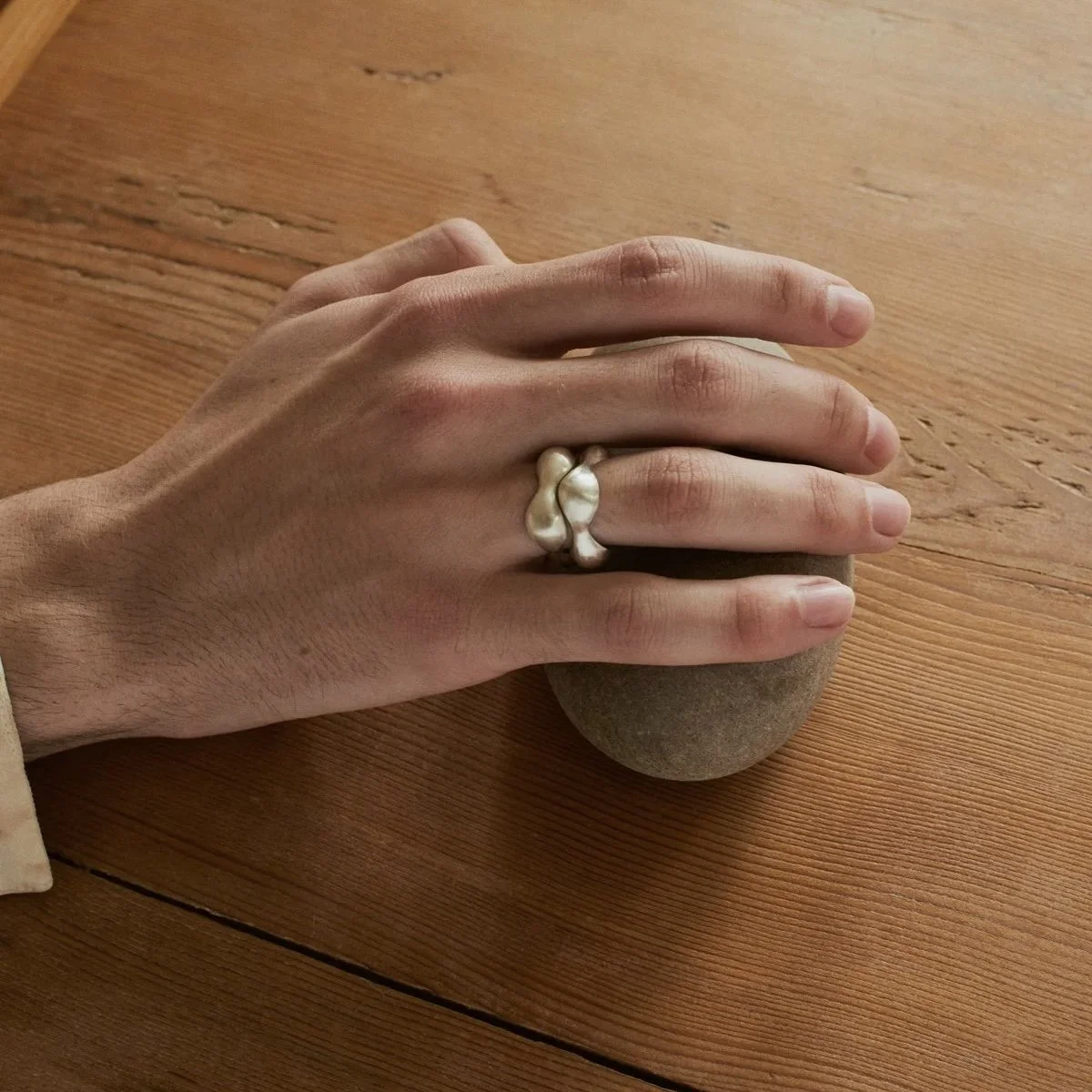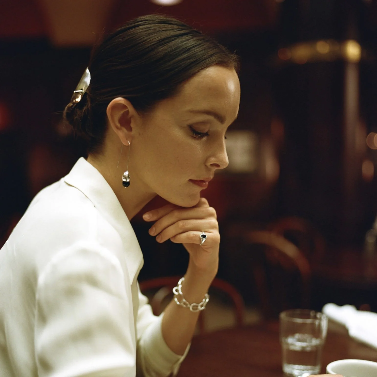 Ama, meaning “woman of the sea” in Japanese, refers to female free divers in Japan who traditionally dove for pearls. These pyrite spheres resemble the classic feminine pearl, but add their own unique metallic quality.