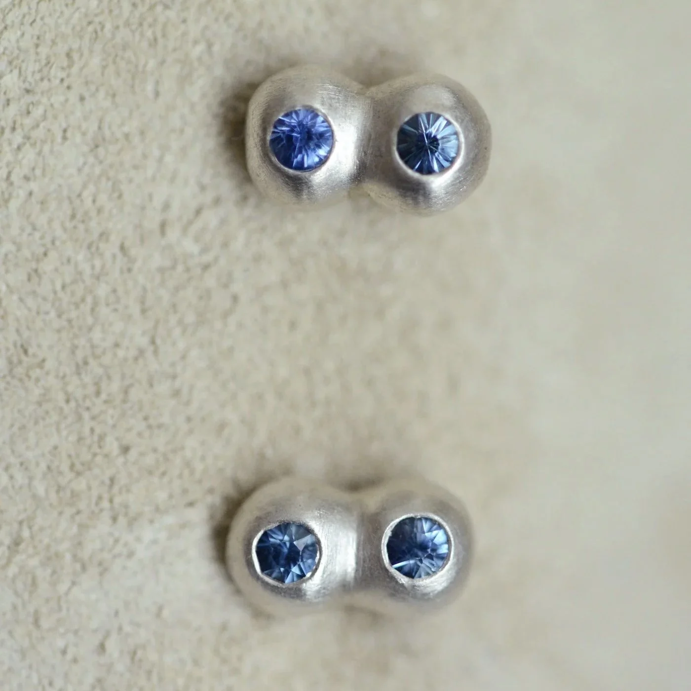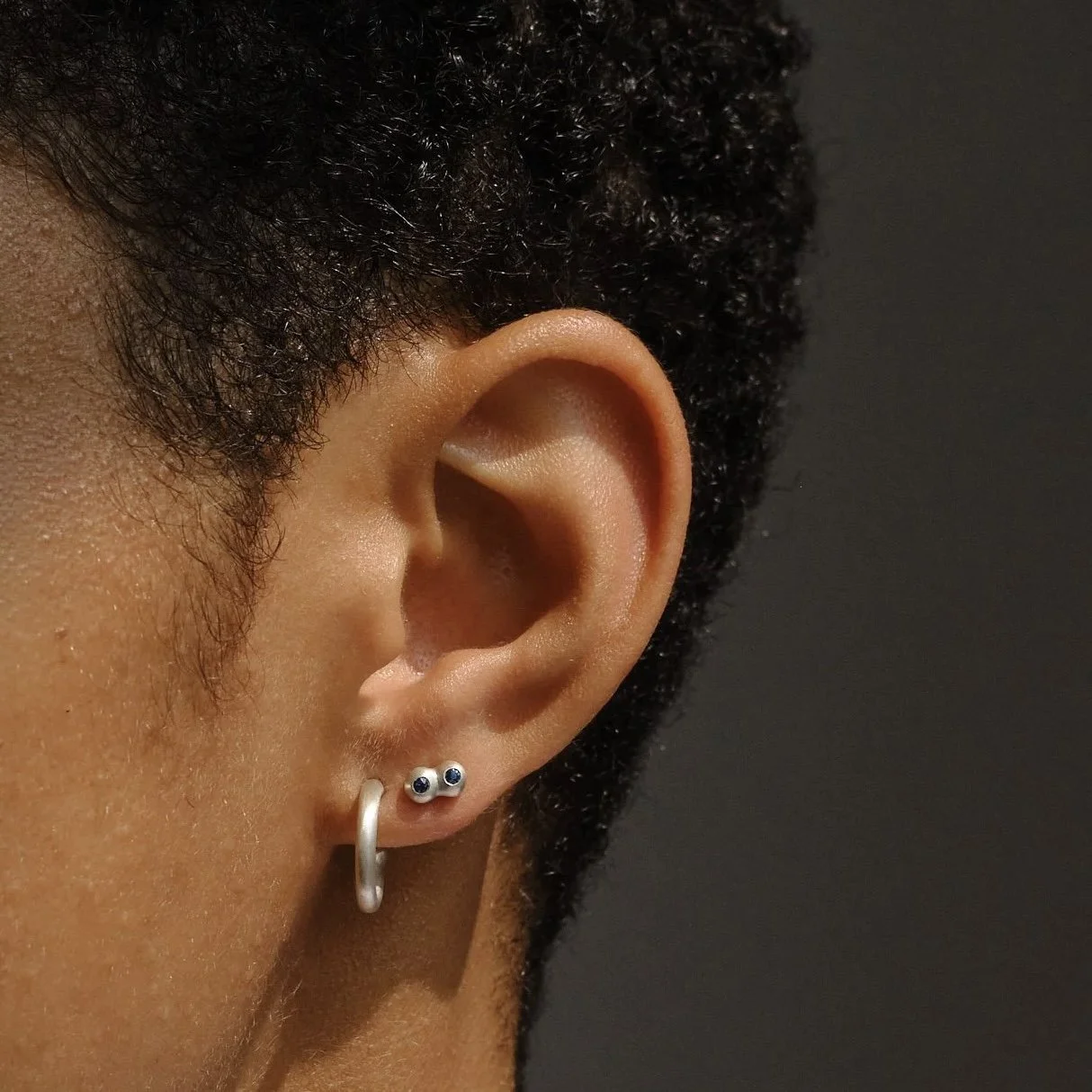 Striking a balance between the geometric and organic, the Owen Earring is modeled after the Owen Ring. The earrings are hand carved in wax and cast in sterling silver. Sit flush on the earlobe. Hinged post.